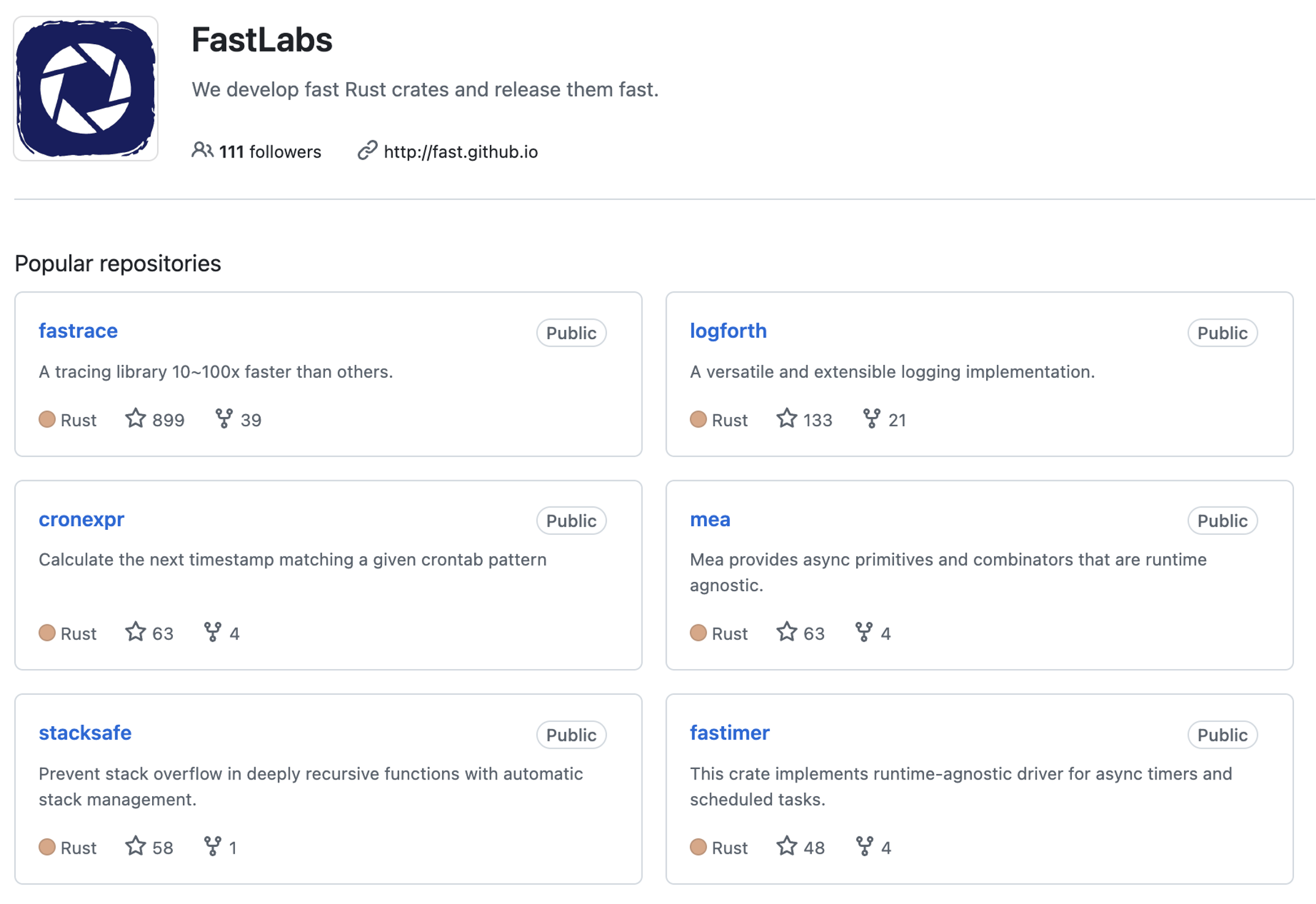 此外,我们也将许多适合以开源形式发布的基础公共库,发布到了 GitHub 的 Fast 组织上: